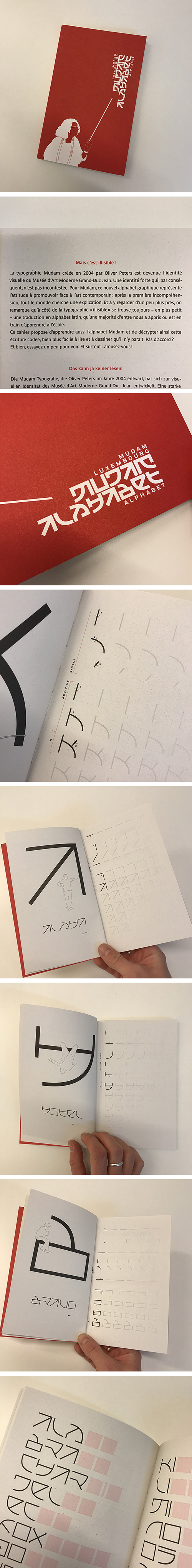 Ce changement suscite déjà pas mal de critiques, alors pour les amoureux de l’ancien logo, et les adeptes du « c’était mieux avant », le Mudam a décidé de faire un clin d’oeil en offrant l’alphabet MUDAM, une publication qui va devenir collector avec la disparition du premier logo créé à l’ouverture en 2006 par le studio berlinois Ott+Stein.