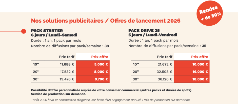 Une offre spéciale – limitée dans le temps – est disponible pour tous les annonceurs qui souhaiteraient s’engager pour l’année 2026.